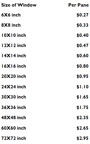 The prices are for ground level windows only, or for windows that may easily be reached by step ladder or pole. For storm windows that have to be removed to be clean, double the basic window price and add to the basic window price. Second story windows are double the basic window price. Screens are $3.00 per screen. Window tracks are $4.50 per window. Window sills and frames are $2.50 per window.